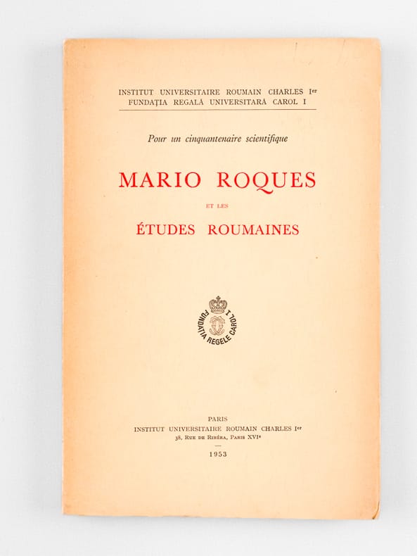 1 vol. in-8 br., Institut Universitaire Roumain Charles Ier, Paris, 1953, 222 pp.