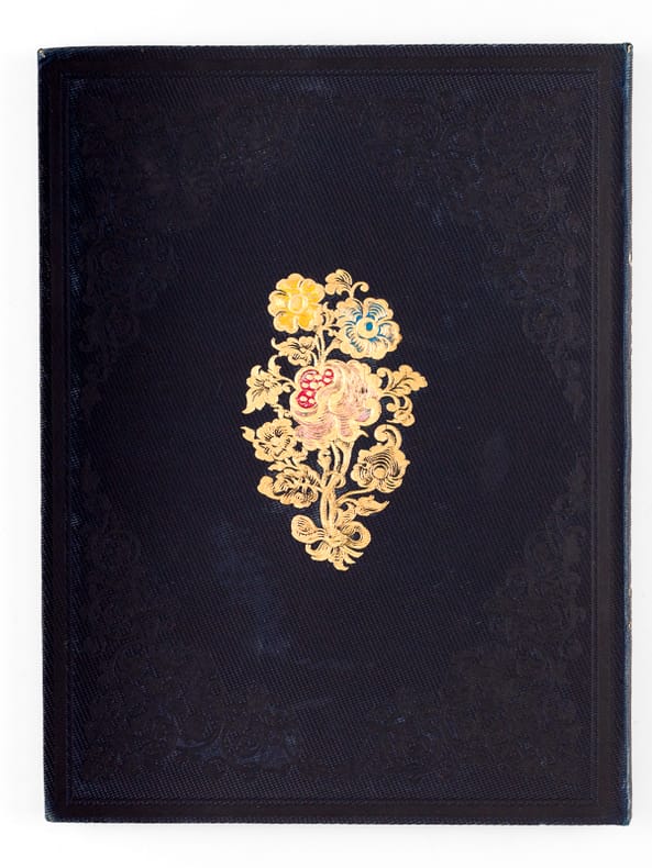 1 vol. in-4 cartonnage polychrome éditeur, toutes tranches dorées, H. Mandeville, Paris, s.d. [ 1849 ], 1 f., 28 ff. n. ch. avec 15 planches hors texte (y compris le frontispice et le titre gravé ) gravés sur acier par C. heath, J. Penston, H. Cook, L. Stocks d'apès F. Poole, E. Corbould, G. Cattermole, J. Brown, etc...
