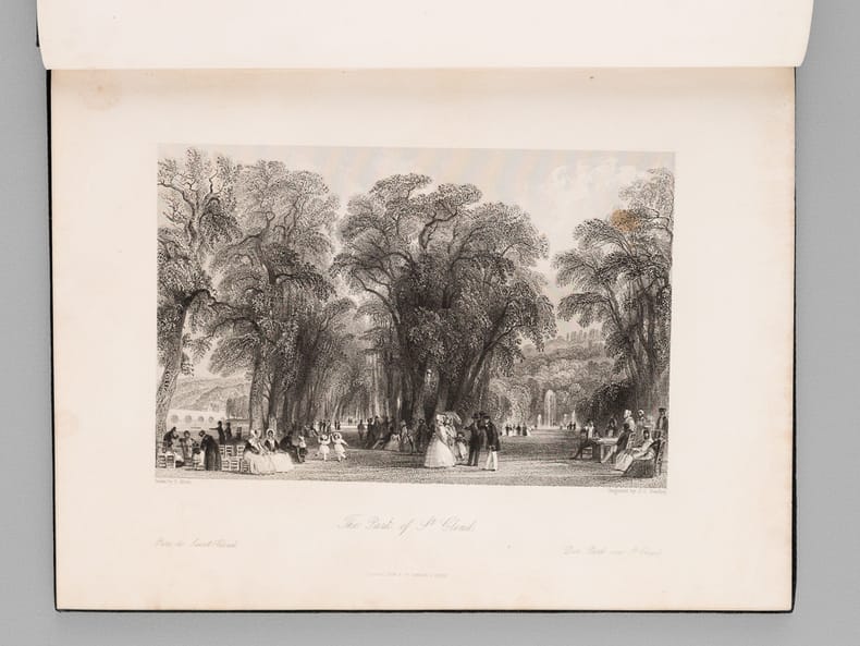 Superbe état pour ce très beau cartonnage éditeur, contenant 15 planches (Vicaire et Carteret annoncent 5 planches). Bel exemplaire de ce keepsake peu commun (qq. rouss., cartonnage en superbe état, ex-libris Roland Thibaut, ancienne étiquette d'époque de la librairie Jourdan Moral à Mulhouse). Vicaire, IV, 663 ; Carteret, III, 331