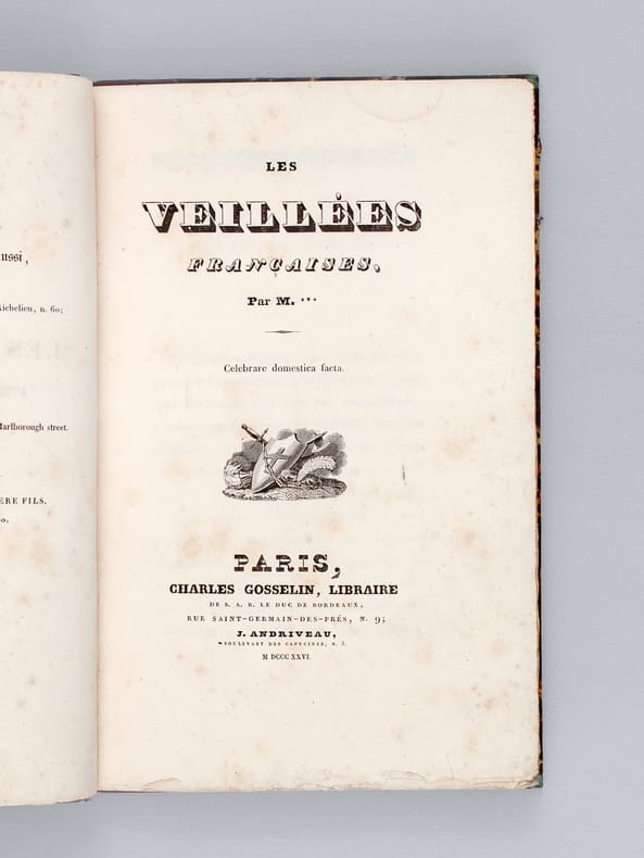 1 vol. in-8 reliure demi-chagrin maroquiné rouge, dos à 5 nerfs dorés orné (caissons), Charles Gosselin, Paris, J. Andriveau, Paris, 1826, viii-189 pp.