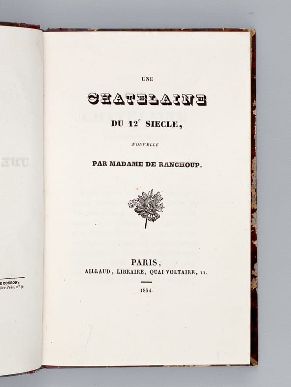 Rare exemplaire de l'édition originale de ce roman publié par Madame de Ranchoup, nom de plume de Pauline Fourès, née Marguerite-Pauline Bellisle (1778-1869). Surnommé Bellilote, elle fut la maîtresse de Napoléon Bonaparte lors de la campagne d'Egypte. Ne pouvant approcher le premier Consul à son retour en France, elle se remarie avec Pierre Henri de Ranchoux, divorce à nouveau et part avec Jean Auguste Bellard, ancien capitaine de la Garde Impériale. Ils feront fortune au Brésil et elle revient à Paris en 1837. Etat satisfaisant (frott. et petits mq. de cuir en mors, qq. petites mouill., bon état par ailleurs).