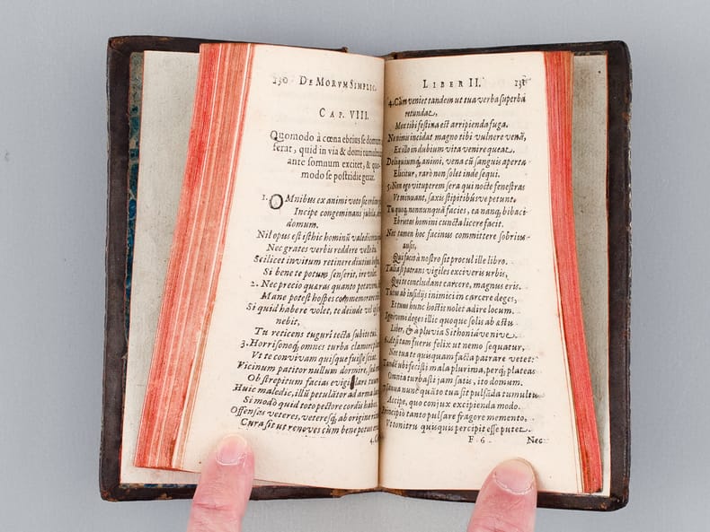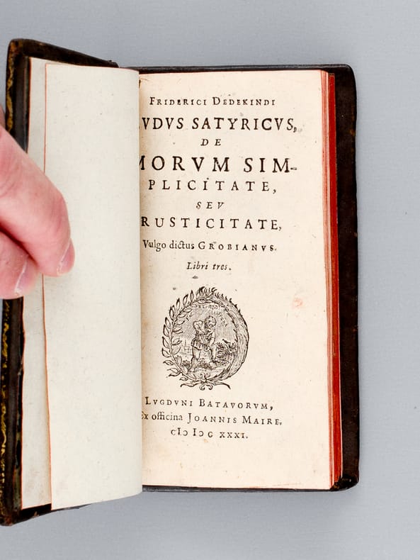 1 vol. in-32 reliure postérieure début XIXe pleine basane racinée, dos lisse orné, chasses ornées, Ex Officina Joannis Maire, Lugduni Batavorum [ Leyde ], 1631, 215 pp.