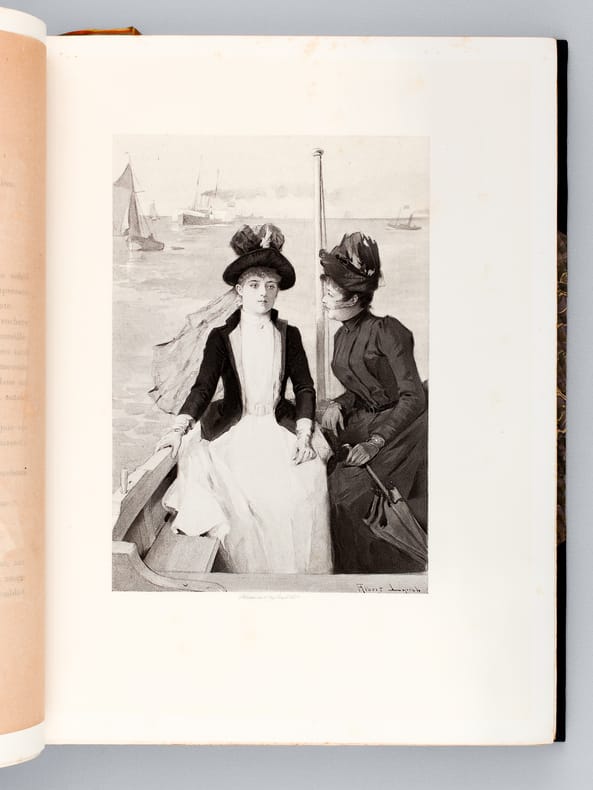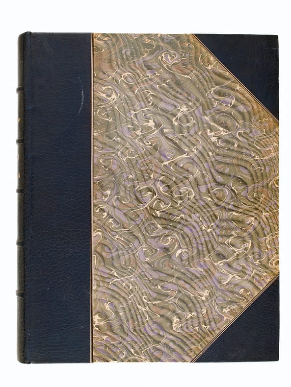 Illustré par Ernest Duez et Albert Lynch, 1 vol. in-folio reliure de l'époque demi-maroquin bleu, dos à 5 nerfs, tête dorée, couvertures conservées, Boussod, Valadon et Cie, Paris, 1888, 170 pp. et 1 f.