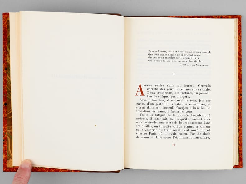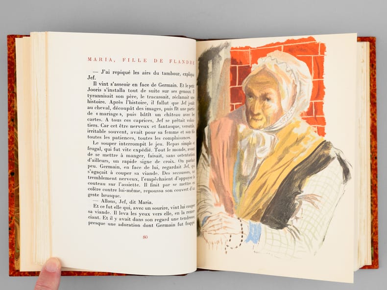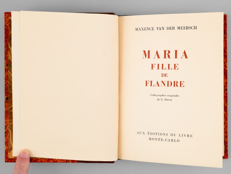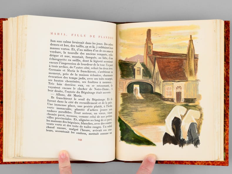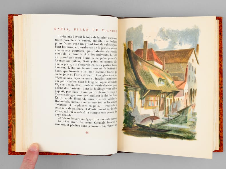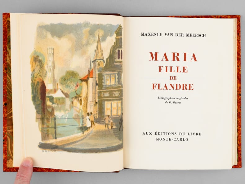 Lithographies originales de G. Barret, tirage à 3500 exemplaires, 1 vol. petit in-8 reliure demi-basane marron, dos à 5 nerfs, couverture conservée, Aux Editions du Livre, Monte-Carlo, 1948, 292 pp.