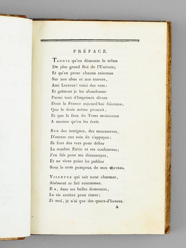 1 vol. petit in-8 reliure de l'époque demi-basane marron, dos lisse orné, De l'Imprimerie de Clousier, Paris, 1790, 2 ff., 186 pp.