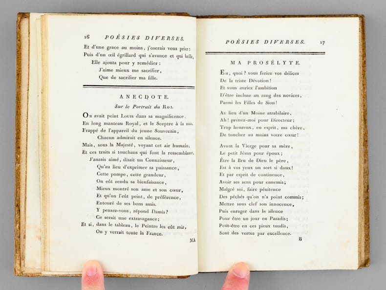1 vol. in-18 reliure de l'époque demi-basane rouge, dos à 4 nerfs richement orné, Urbain Canel, Paris, 1823, 3 ff., 106-84 pp.