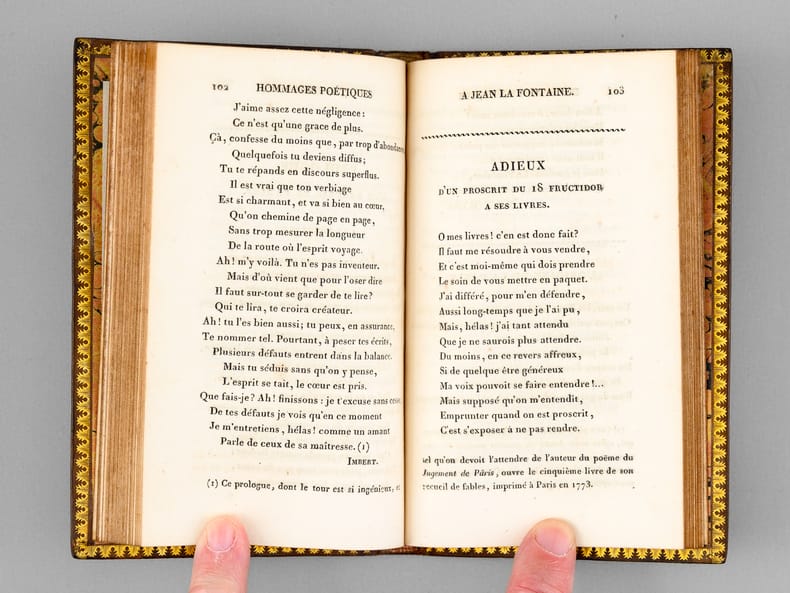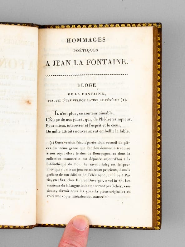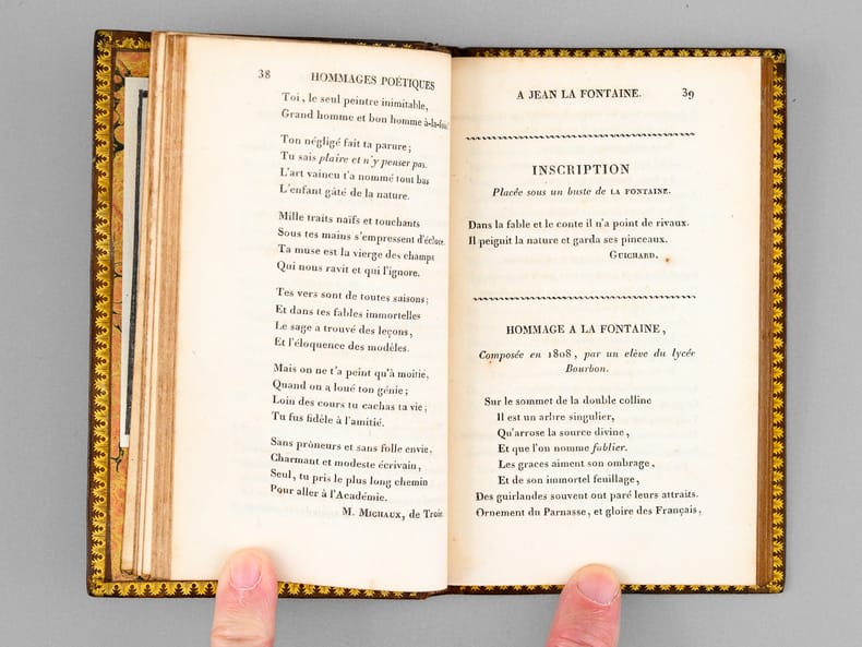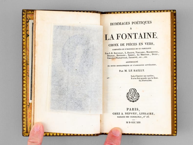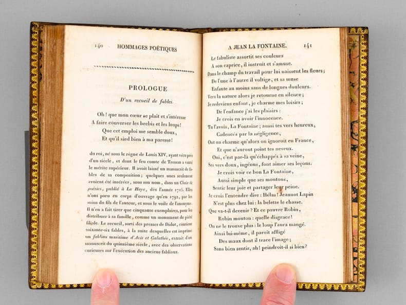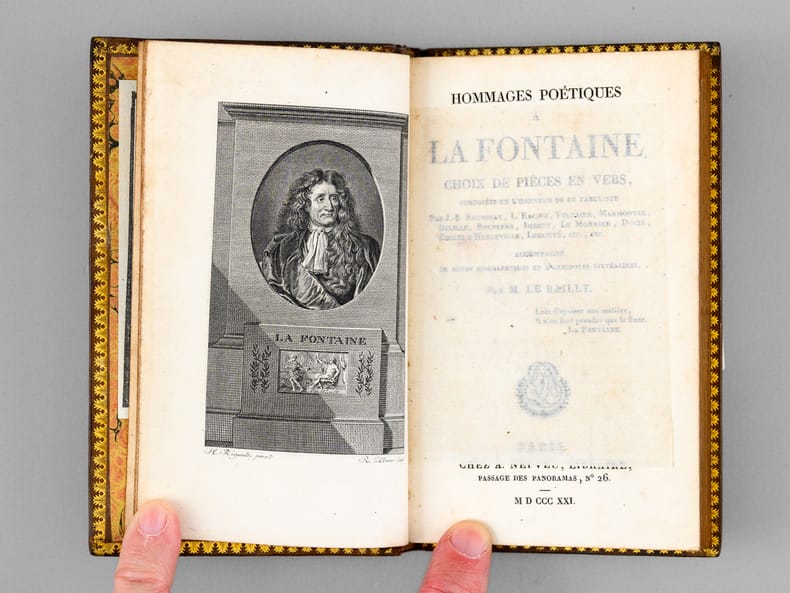 1 vol. petit in-12 rel. pleine basane brune, dos à 5 nerfs, toutes tranches dorées, frontispice noir et blanc, chez A. Nepveu, Libraire, Paris, M D CCC XXI ( 1821 ), 172 pp.