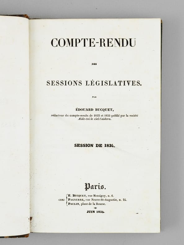1 vol. in-8 reliure de l'époque demi-maroquin brun, dos lisse orné, Chez E. Bucquet, Pagnerre, Paulin, Paris, Juin 1834, 390 pp. et 1 f. n. ch.