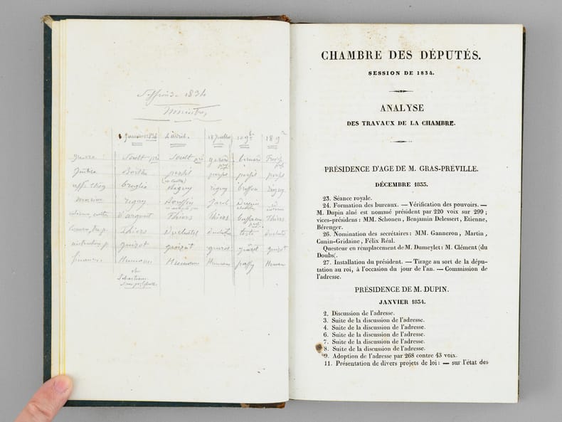 Bon état (reliure lég. frottée, annotations manuscrites au crayon détaillant les noms des ministres au verso d'un feuillet).