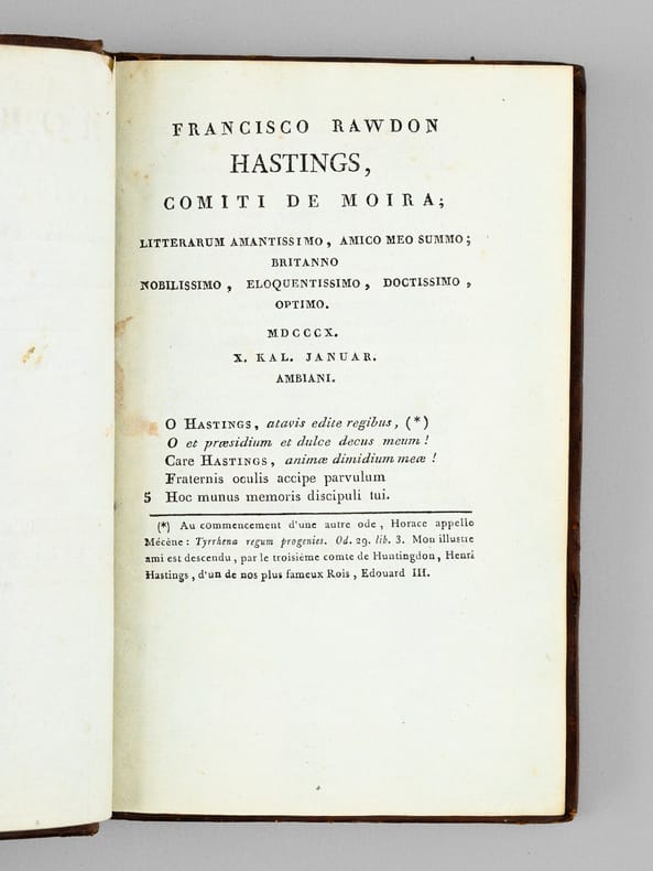 PARIS. CHEZ ANTOINE - AUGUSTIN RENOUARD. 1810. IN-8 (12,5 X 18,5 X 2 CENTIMETRES ENVIRON) DE (12) + 204 PAGES, RELIURE D'EPOQUE 1/2 CHAGRIN BRUN, DOS LISSE ORNE DE FILETS DORES, TITRE DORE, TRANCHES MARBREES. AVEC UN GRAND TABLEAU DEPLIANT. QUELQUES PETITES ROUSSEURS, SINON BEL EXEMPLAIRE.