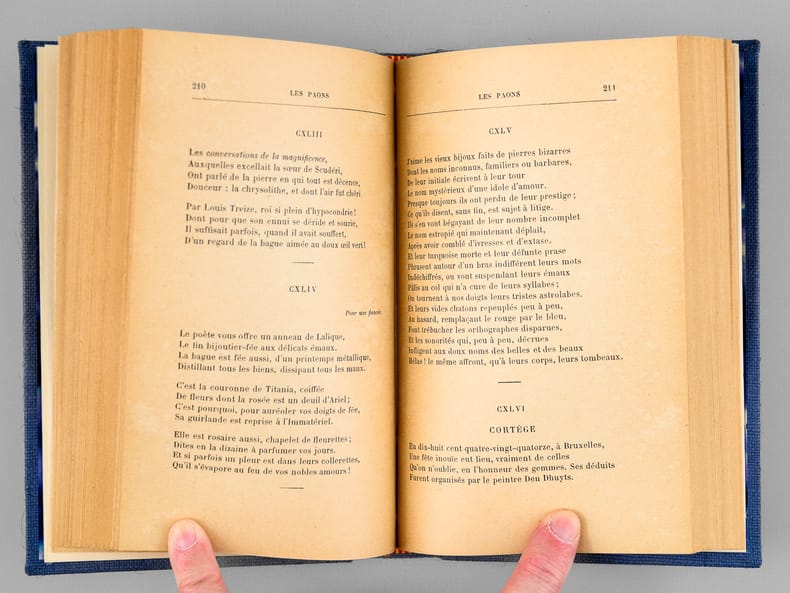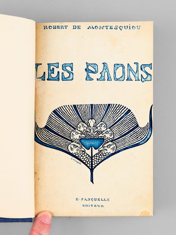 Rare exemplaire du tirage courant de l'édition originale (après 9 Japon et 13 Hollande), bien complet de la jolie couverture illustrée par Lalique. Bon exemplaire (ex-libris en garde).