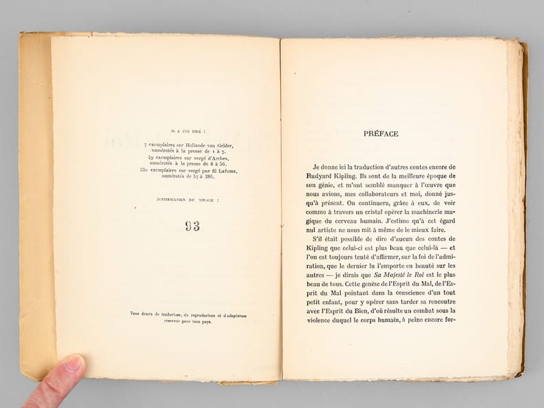 Traduit par Louis Fabulet, un des 330 exemplaires sur vergé pur fil Lafuma numérotés de 57 à 386 (n° 93), 1 vol. in-12 br., Mercure de France, Paris, 1923, 265 pp. et 3 ff. n. ch.