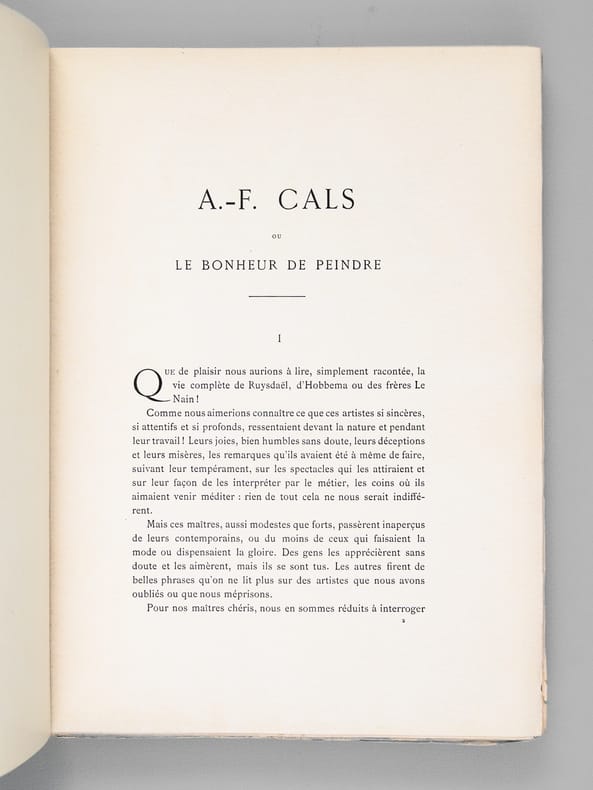 Né à Paris et mort à Honfleur, Adolphe-Félix Cals (1810-1880) participa notamment, à l'invitation de Manet, à la Première Exposition des peintres impressionnistes, en 1874. Le critique Georges Pillement a pu le considérer comme l'un des précurseurs des impressionnistes.Bon état (couv. un peu frottée).