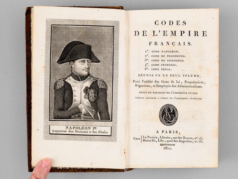 Ornés du Portrait de l'Empereur et Roi, Edition conforme à celles de l'Imprimerie Impériale, 1 vol. in-12 reliure de l'époque pleine basane brune orné, dos lisse orné, Chez Le Prieur, Belin Fils,Paris, 1811, 520-182 pp. et 2 ff. n. ch.