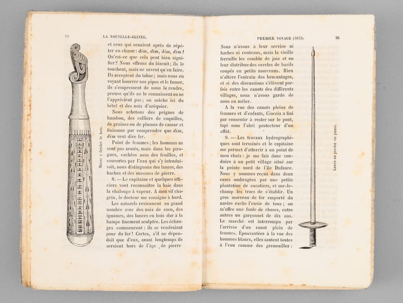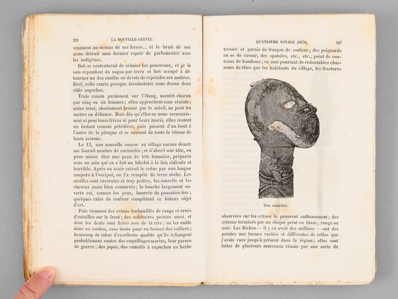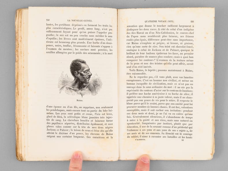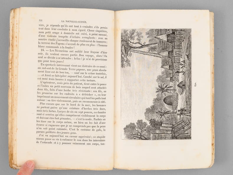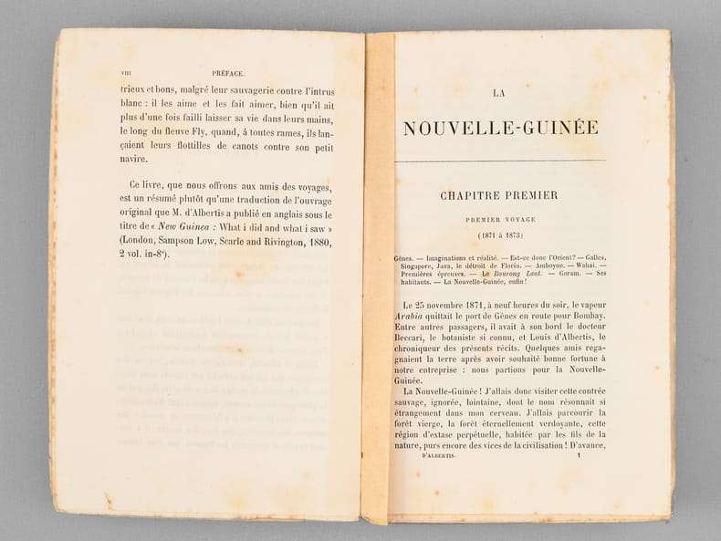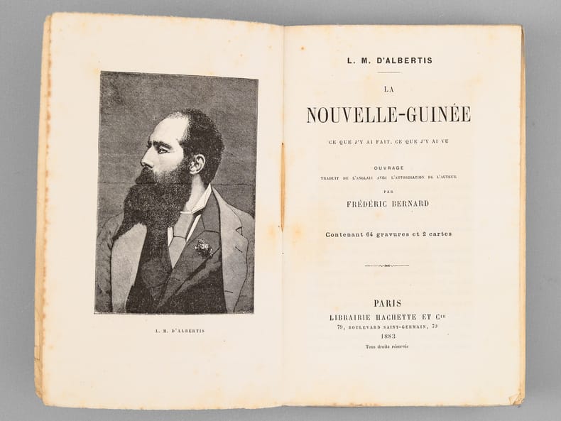 Etat satisfaisant (couv. frottée, bon état par ailleurs). Peu courant en exemplaire d'époque. L'auteur était un naturaliste italien qui découvrit de nombreuses espèces animales en Nouvelle-Guinéee, encore largement inexplorée. Plusieurs espèces portent d'ailleurs son nom.