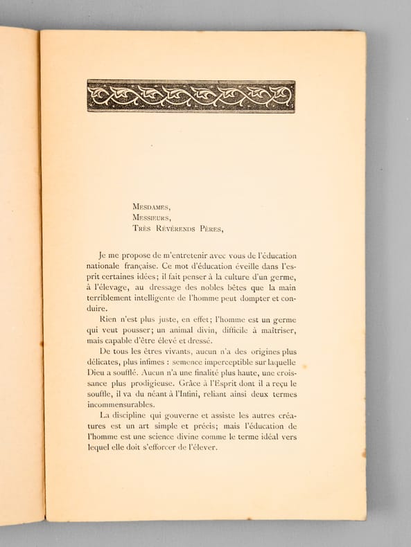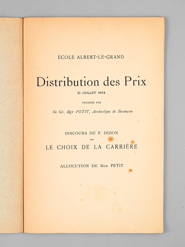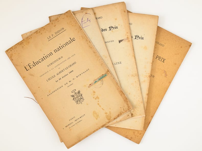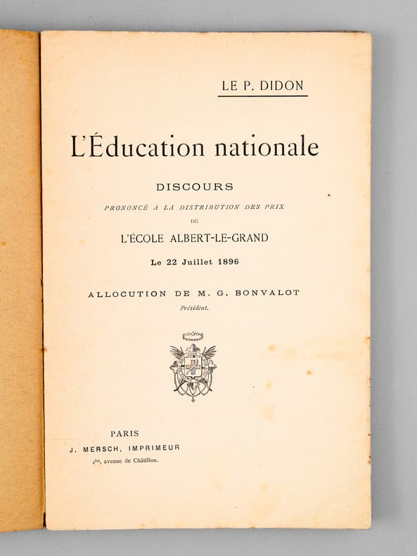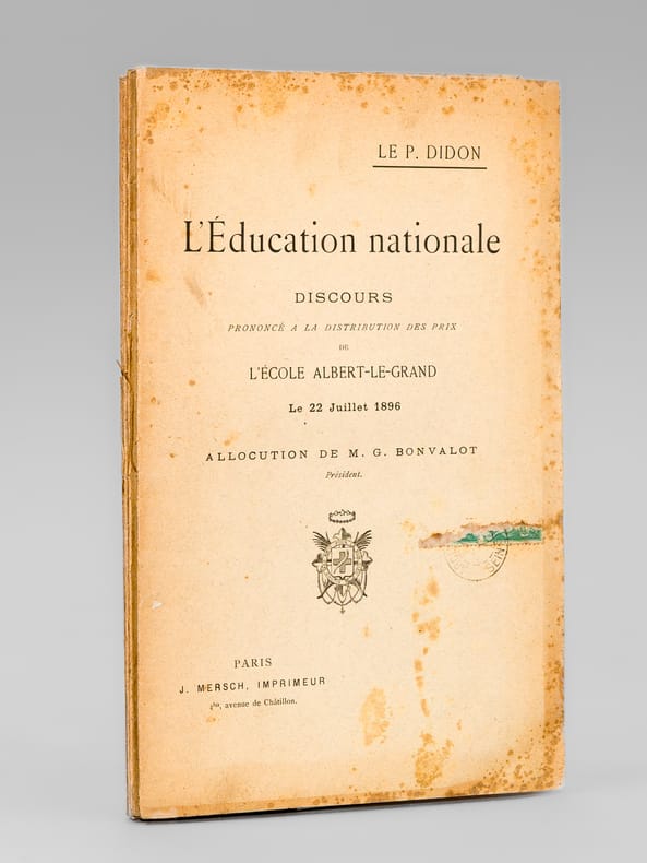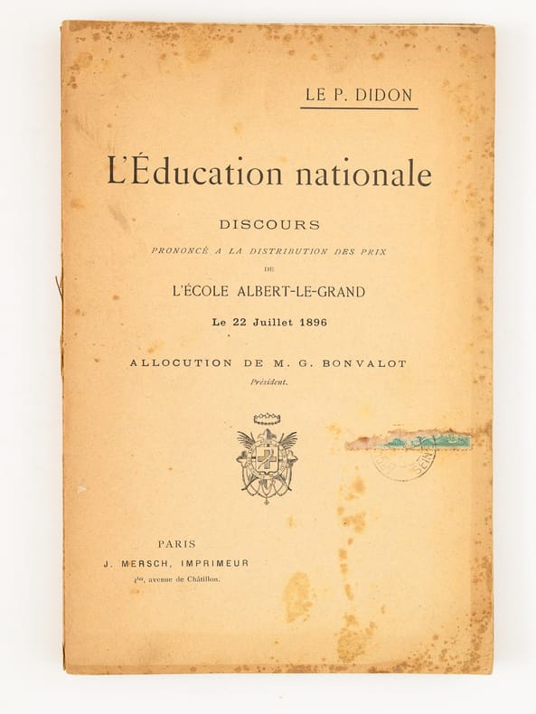 Le célèbre père dominicain Henri Didon (1840-1900) fut nommé en 1890 proviseur et prieur au collège dominicain Albert-le-Grand d'Arcueil. Proche de Pierre de Coubertin qu'il rencontre en janvier 1891, le Père Didon promeut le sport dans l'établissement scolaire, ainsi qu'il l'exprime dans les dernier discours où il vante l'activité physique : "Ne croyez pas, Messieurs, que l'activité soit un besoin fatal qui entraîne toutes les natures. L'expérience démontre que, dans notre nation française, parmi ceux que la destinée emble avoir marqués pour commander aux autres, il existe trois catégories d'enfants : les mous, les jouisseurs précoces, rêvant le plaisir et le bien-être, et les actifs". Bon ensemble, peu commun.