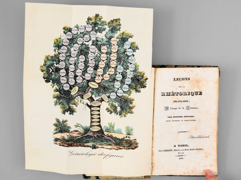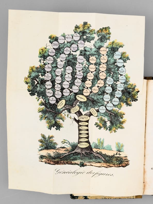 1 vol. in-12 reliure demi-toile grise, Chez Caillot, Paris, 1836, 318 pp. avec planche dépliante en couleurs ("Généalogie des Figures")