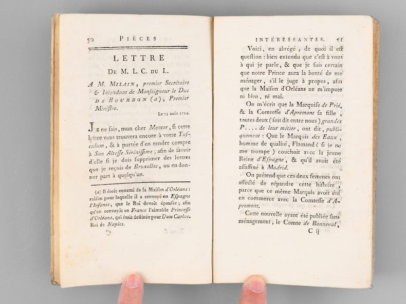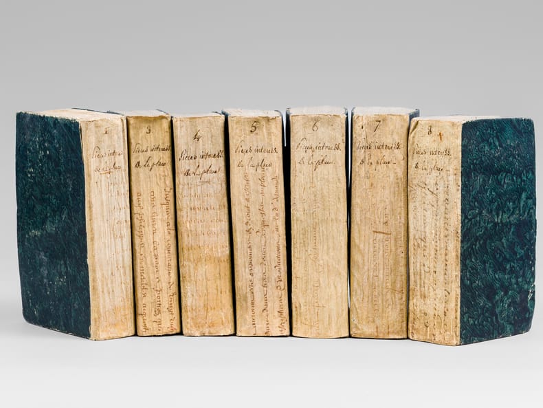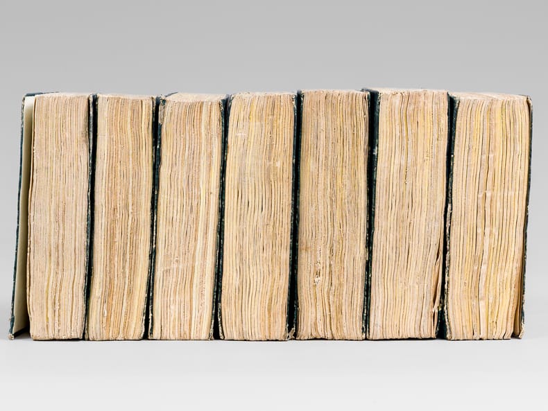 Nouvelle édition, 7 vol. in-12 reliure demi-vélin de remploi, Chez Prault, Imprimeur du Roi, A Bruxelles, et se trouve à Paris, 1785-1790