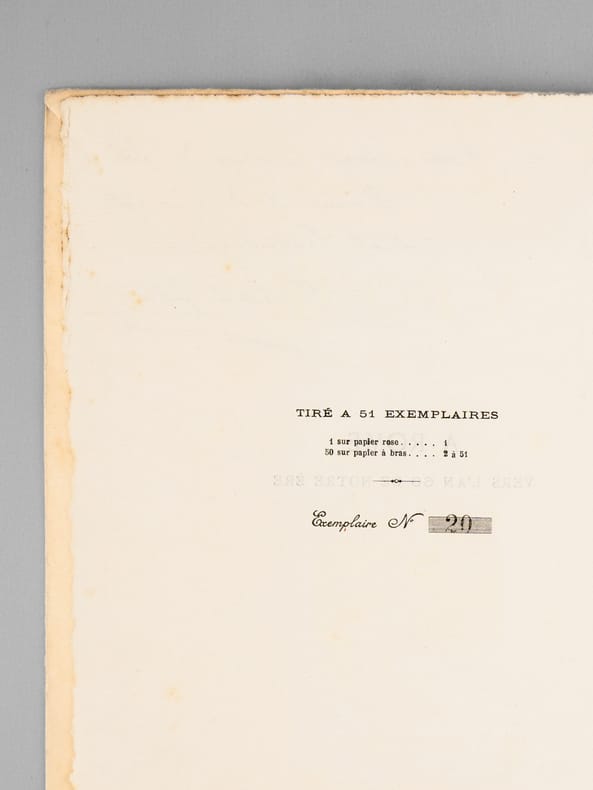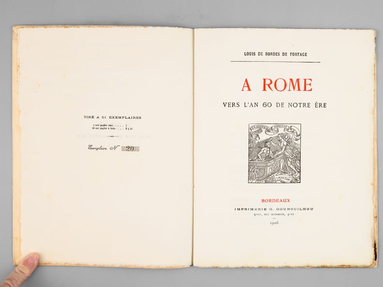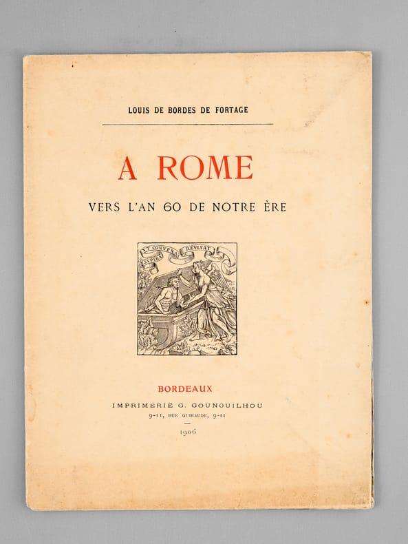 Tirage à 51 exemplaires, un des 50 sur papier à bras (n° 20), 1 brochure in-8, Extrait des Actes de l'Académie nationale des Sciences, Belles-Lettres et Arts de Bordeaux, Imprimerie G. Gounouilhou, Bordeaux, 1906 (imprimé le XV mai 1905), 8 pp. et 1 f. n. ch.