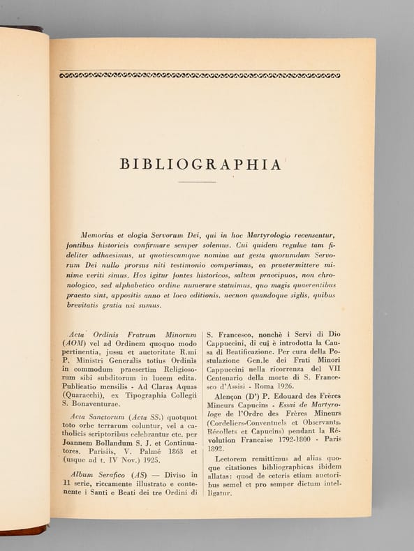 Auctore P. Arturo A Monasterio recognitum et auctum a PP. Ignatio Beschin et Juliano Palazzolo iussu Rmi P. Leonardi Maria Bello ministri generali editum, 1 vol. in-8 reliure de l'époque demi-basane blonde, dos à 5 nerfs, Apud Librariam Collegii S. Antonii, Romae, 1938, 550 pp.
