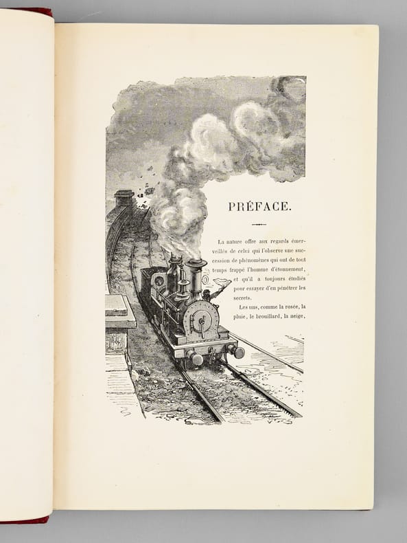 Nombreuses illustrations in et hors-texte, dont plusieurs pleines pages. Cet ouvrage d'éducation présente les phénomènes liés au chaud et au froid, à la pluie et au beau temps, à la lumière ; il traite des océans, des mères glacières, des montagnes et glaciers, des volcans et geysers, des tremblements de terre...