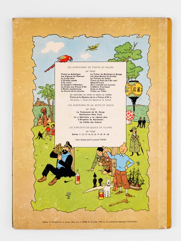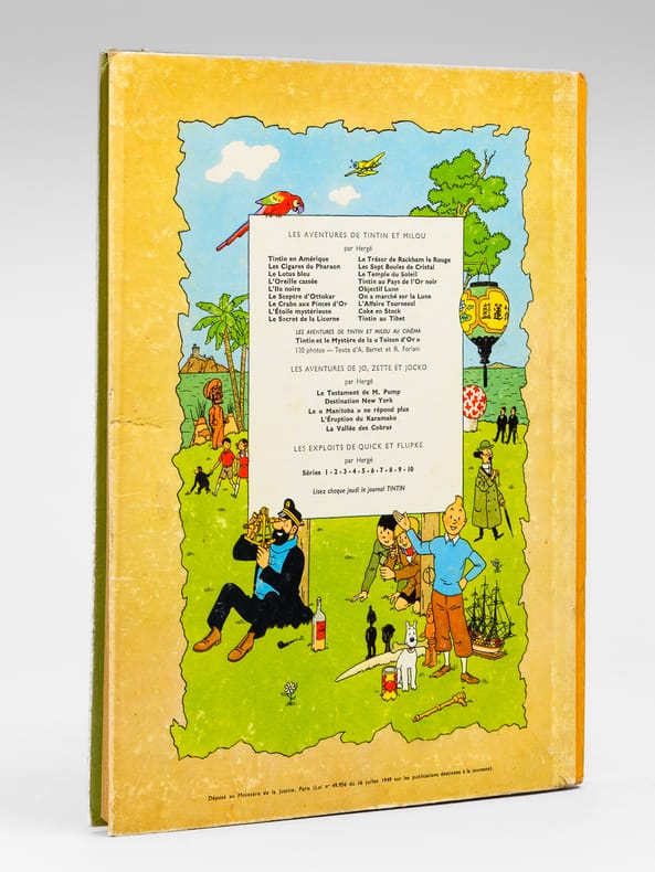 B 28. 1960. 4e plat de couverture: Collection Hergé. Les Aventures de Tintin et Milou. Les aventures de Jo, Zette et Jocko. Les exploits de Quick et Flupke par Hergé, Séries 1-2-3-4-5-6-7-8-9. Lise chaque jeudi le journal 'Tintin'. Classification Dewey : 843.06-Bande dessinée