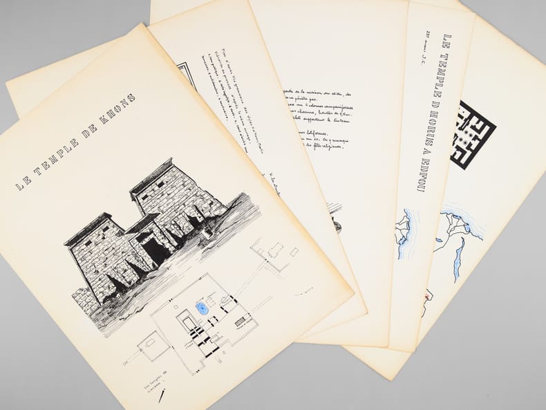 5 ff. format 37,8 x 28 cm dont un double sous chemise brune, sur Canson fort,