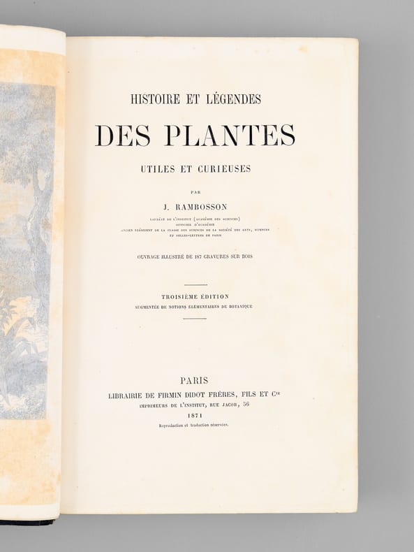 3e éd. augmentées de notions élémentaires de botanique, 1 vol. in-8 rel. demi-basane bleue, dos orné à 4 nerfs, toutes tr. dorées, 187 gravures sur bois, Librairie de Firmin Didot frères, fils et Cie, Paris, 1871 420 pp.