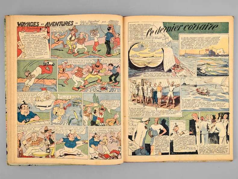 1 vol. grand in-4 cartonnage éditeur illustré, dos toilé rouge, Editions de Montsouris, Paris, du 5 décembre 1948 au 24 avril 1949