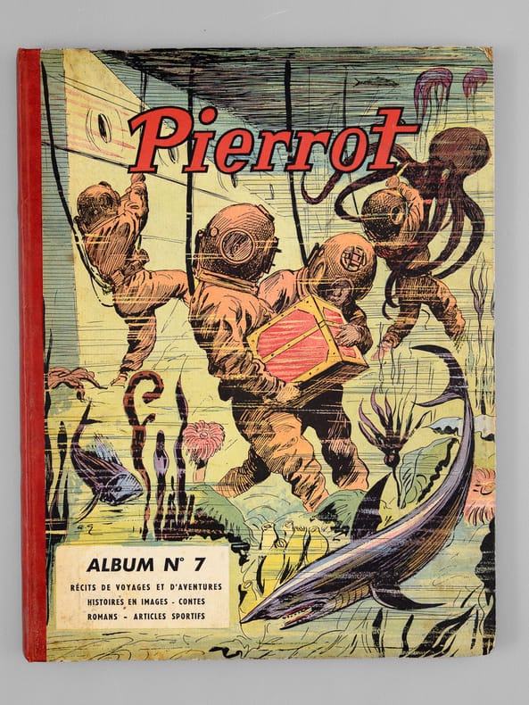 Bon état (usures en coupes) pour cet album dont la belle couverture fait songer à Jules Verne, Robida et Jacobs !