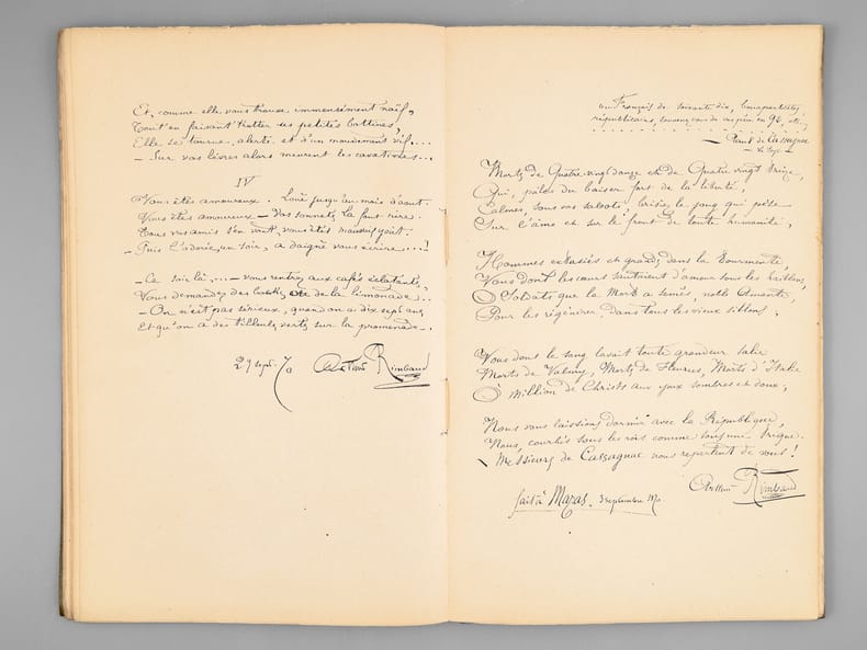 Prix en l'état pour ce fac-similé de manuscrits des poésies de Rimbaud (exemplaire débroché avec manques en dos et plats, exemplaire à relier).