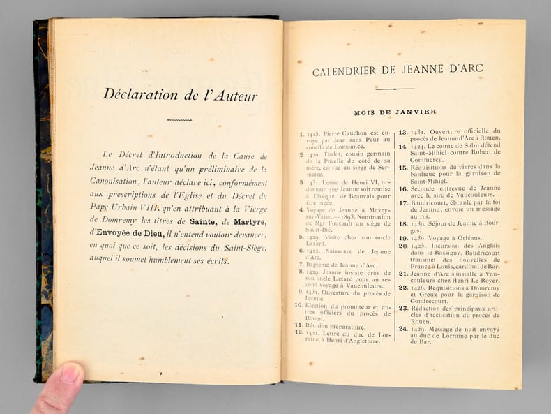 Abbé V. Mourot du diocèse de St. Dié. Calendrier de Jeanne d'Arc. Le Village de Domremy. Le Bois-Chesnu. Notre-Dame de Bermont... Classification Dewey : 940.1-Moyen-Age