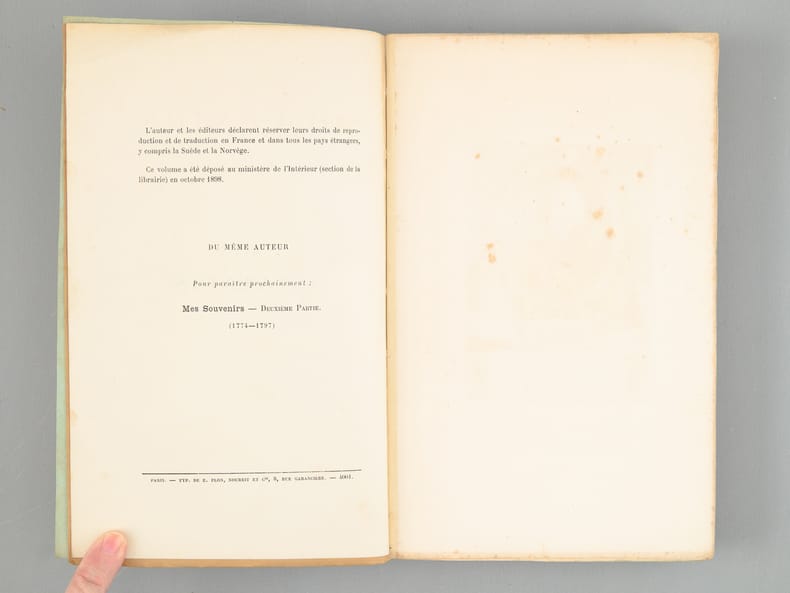 1 vol. in-8 br., Librairie Plon, Plon-Nourrit et Cie, Paris, 1898, XL-442 pp.