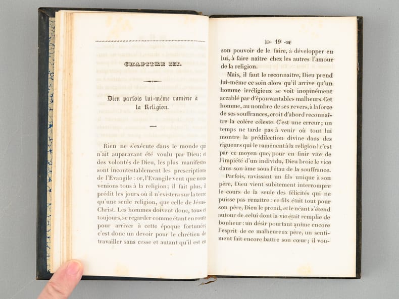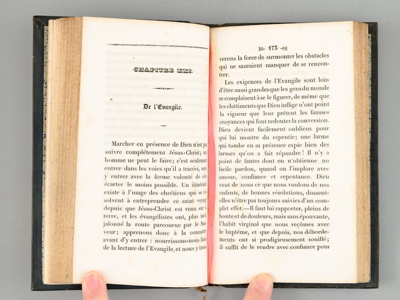 3e édition, petit in-12 pleine basane bleuesn plats et dos ornés, L. Curmer, Paris, Pâques 1837, 310 pp.