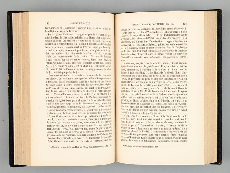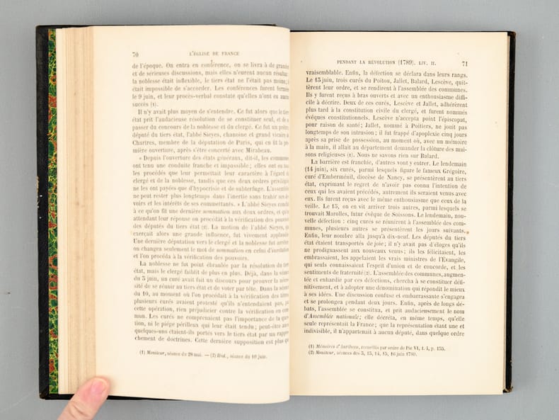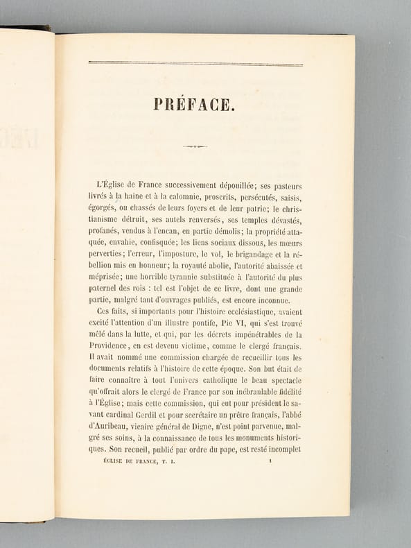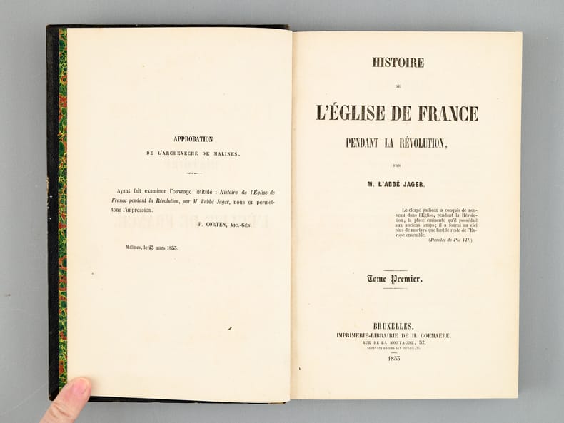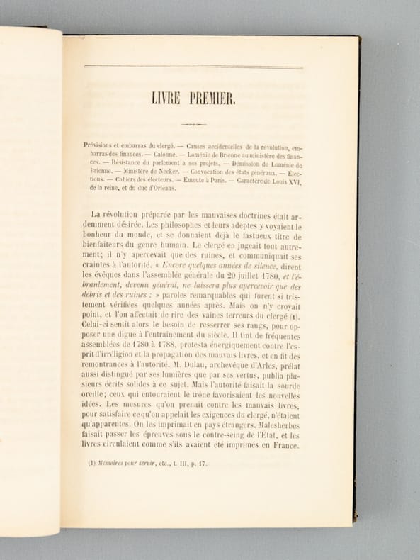 3 vol. in-12 rel. demi-basane noire, imprimerie-librairie de H. Goemaere, Bruxelles, 1855, VII-355 pp., 346 pp. et 454 pp. Les dernier volume s'acchève sur le livre XXI et l'émigration du Clergé.