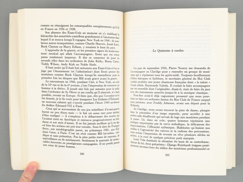 Bon état pour cette autobiographie de Charles Delaunay (1911-1985). Fils des peintres Sonia et Robert Delanay, après un début de carrière comme dessinateur publicitaire, ce passionné de jazz devint en 1933 le secrétaire d'Hugues Panassié, avec lequel il co-fonda la revue "Jazz Hot". Il fut également producteur de disques, ayant notamment co-fondé le label Vogue. Son énorme collection de disques, ainsi que ses archives sont désormais à la Bibliothèque Nationale. Ouvrage peu courant désormais.