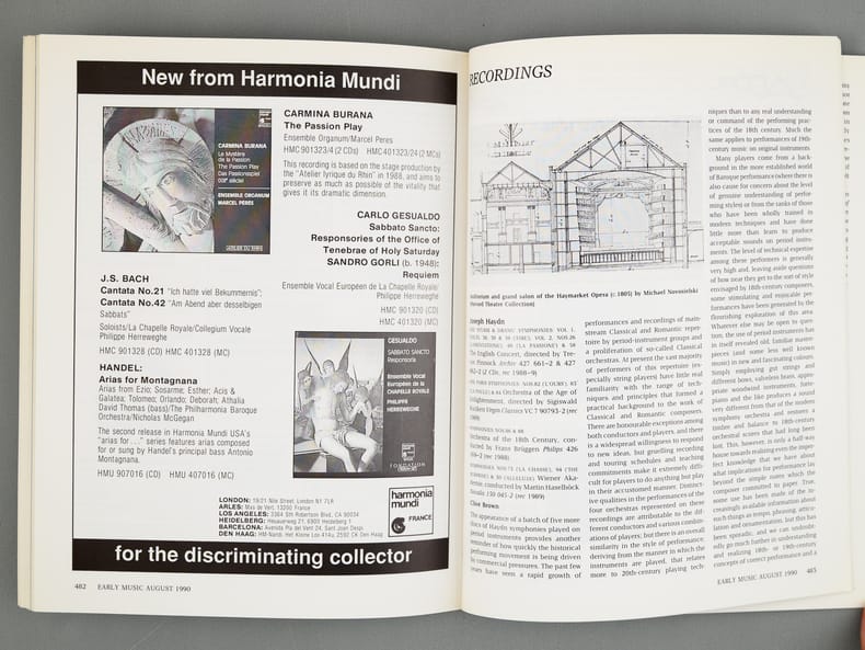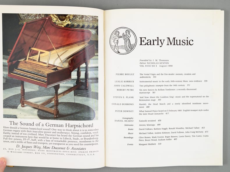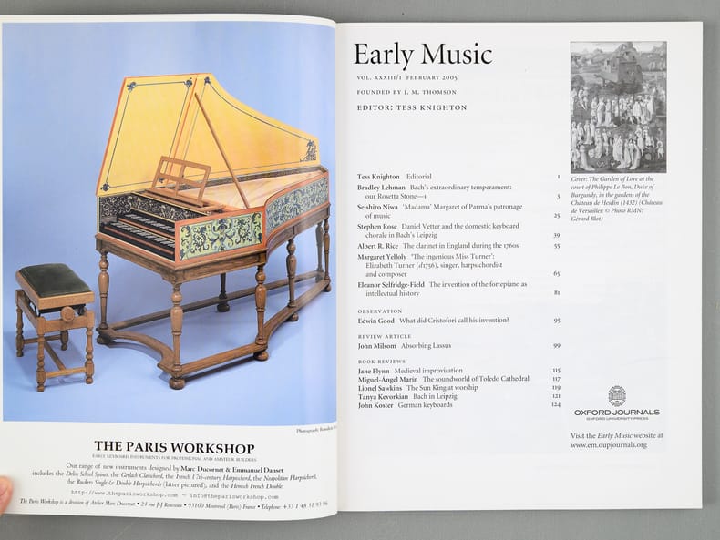 93 issues 8vo. softcover with col. front covers, b&w or col. ill., Early Music, Oxford Journals; Oxford University Press, Oxford, 1986, 1987, 1988, 1989, 1990, 1991, 1992, 1993, 1994, 1995, 1996, 1997, 1998, 1999, 2000, 2001, 2002, 2003, 2004, 2005, 2006, 2007, 2008, 2009, 2010, r. 725 pp. for each year i.e. more than 16,000 pages for the whole. Missing issues are : 1991 /4 , 1992 /1 , /2 and /4, 1993 /1 , 2010 /3 and /4 - Ensemble de 93 numéros de cette revue trimestrielle, du vol. XIV / 1 (Février 1986) au vol. XXXVIII / 2 (mai 2010) ; 25 années complètes, de 1986 à 2010, sauf 7 numéros ]