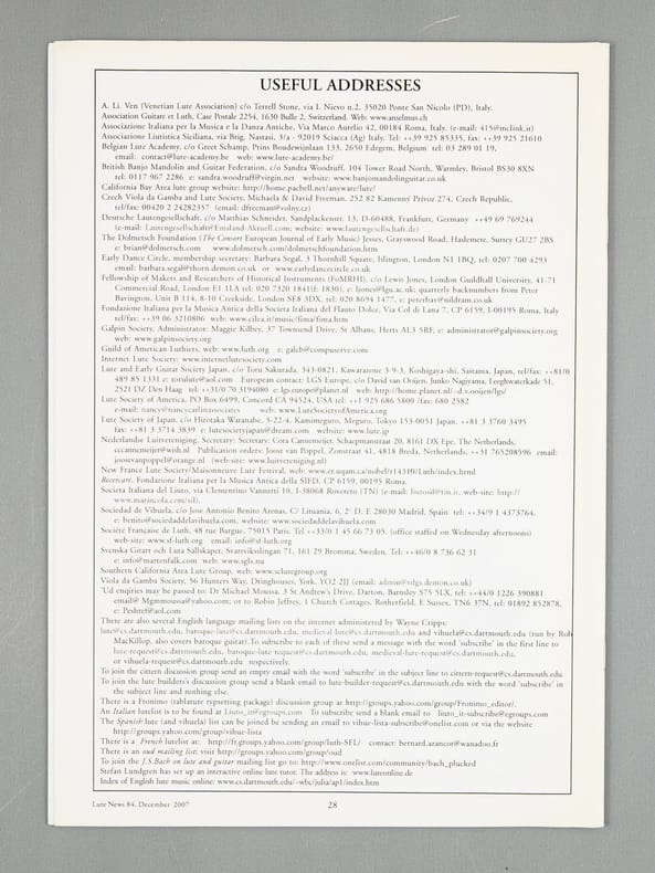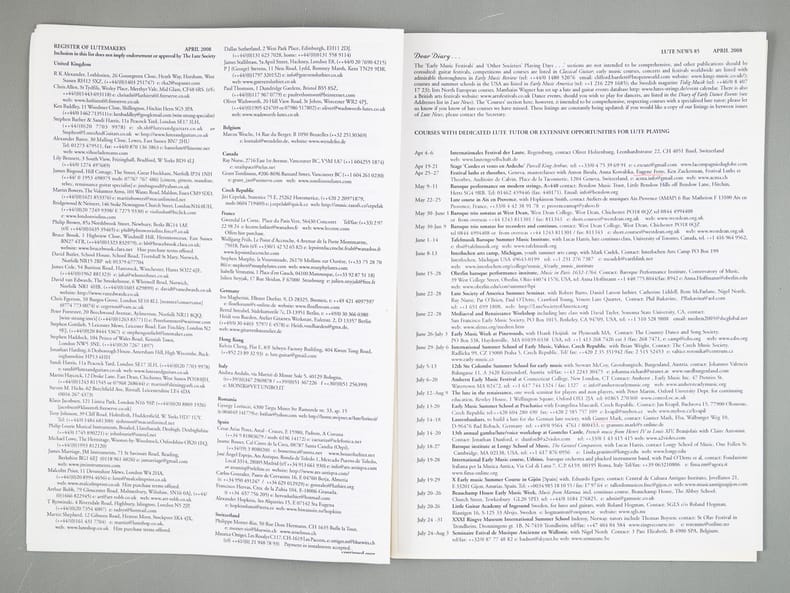 29 issues softcover, the Lute Society, Albury, Guildford, 2006, 2007, 2008, 2009, 2010, 2011, 2012, 2013 and 2014 rd. 40 pp. for each issue, i.e. rd 1,200 pp. for the whole.