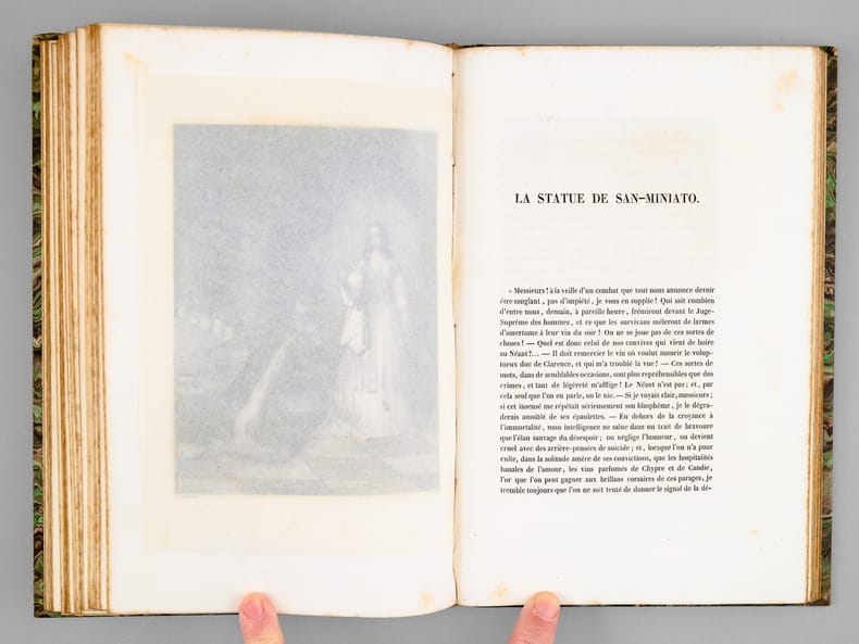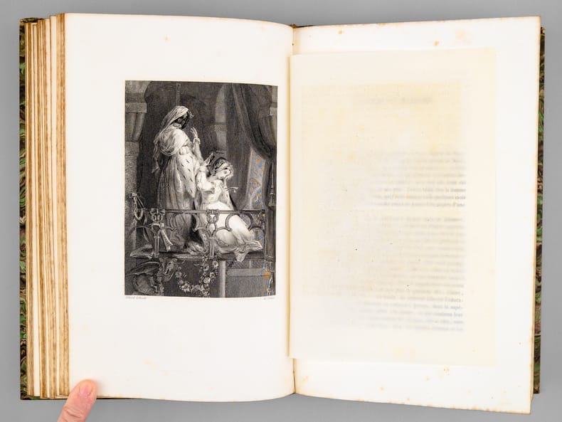 1 vol. in-8 reliure de l'époque demi-chagrin vert, dos lisse orné en long, toutes tranches dorées, triple filet doré en mors, reliure signée de Boutigny, H.-L. Delloye, Paris, s.d. [ 1841 ], 2 ff., 236 pp. avec 26 planches hors texte (y compris le titre gravé)