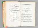 Editions originales de la traduction française par le Baron de Blumenstein de "Essay on Prints" et des "Three essays: on picturesque beauty; on picturesque travel; and on sketching landscape" ; le second titre est bien complet des 7 planches hors texte, dont 6 belles aquatintes (5 en noir et 1 en couleurs). Les théories du révérend William Gilpin (1724-1804) sur le "pittoresque" auront marqué son temps, à l'aube du développement touristique en Grande-Bretagne et dans toute l'Europe Continentale. La nouvelle génération adepte du "Grand Tour" en restera profondément marquée. Etat très satisfaisant (dos restauré, sans la première garde volante, coins un peu frottés, bon état par ailleurs)