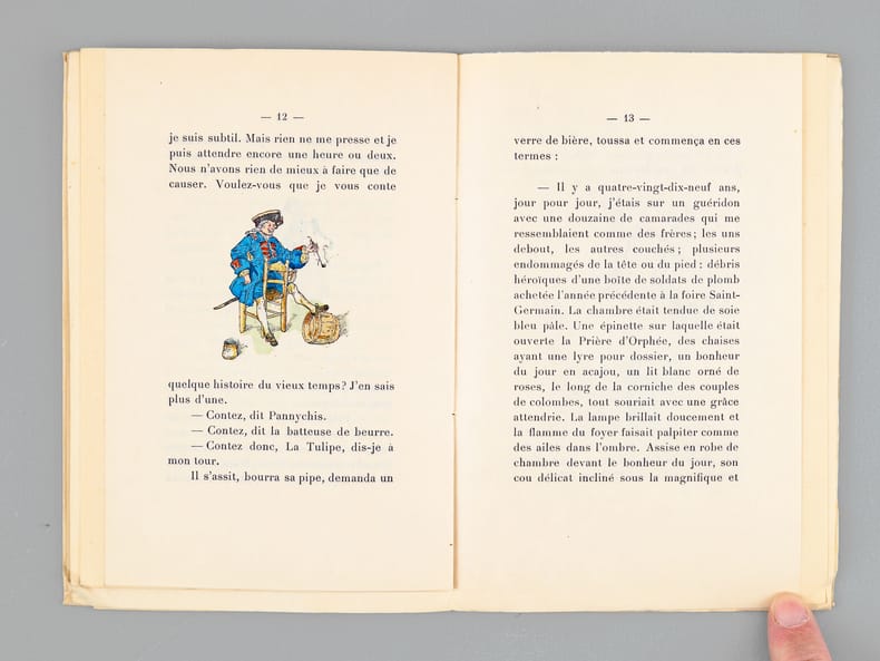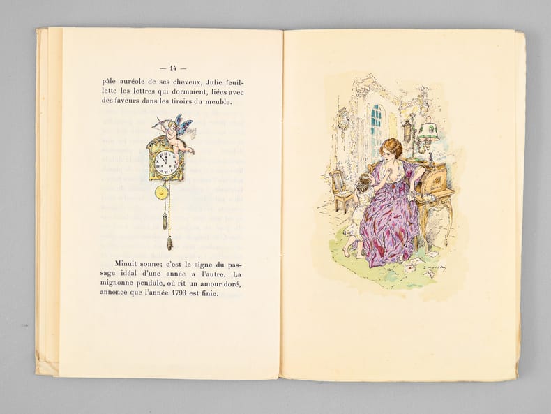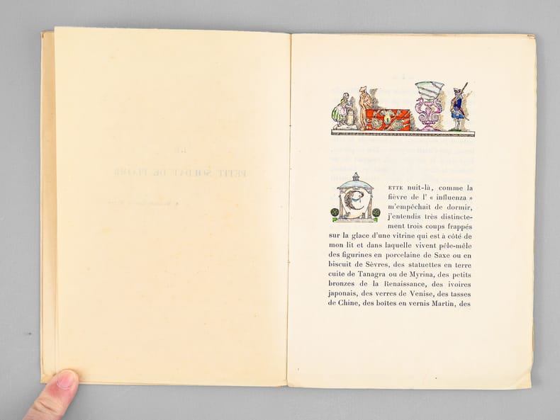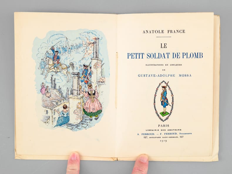 Illustrations en couleurs de Gustave-Adolphe Mossa, un des 200 exemplaires numérotés de 101 à 300 (n° 187) sur Japon ou vélin (celui-ci sur Japon), contenant deux états dont un état en noir avec remarques, 1 vol. in-12 br. sous couv. rempliée, Librairie des Amateurs, A. Ferroud, F. Ferroud, Paris, 1919 (1928 à l'achevé d'imprimer), 33 pp., 3 ff. et suite sur chine