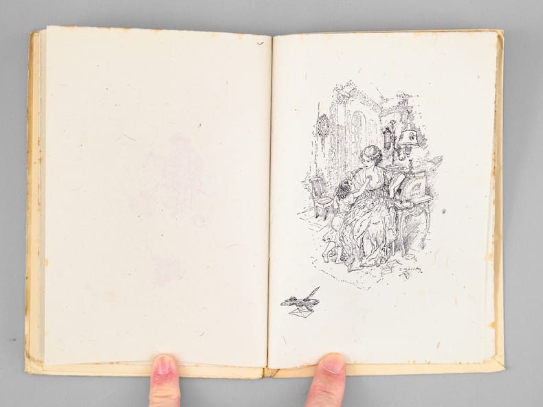 Bon état pour ce charmant ouvrage dans son tirage ur papier du Japon, superbement illustré par Gustave Mossa (petit choc en coin, très petite usure en coiffe sup., très bon état par ailleurs).