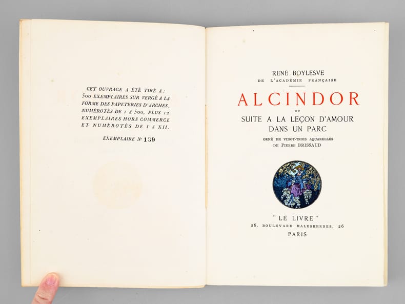 Tirage unique à 512 exemplaires sur vergé d'Arches à la forme. Les aquarelles de Pierre Brissaud sont coloriées à la main, au pochoir. Exemplaire élégant et sobre, en très bel état.