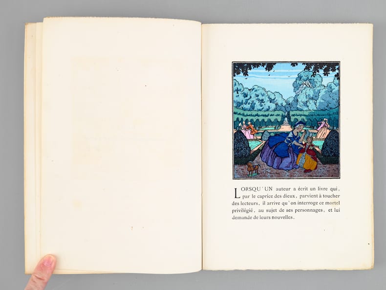 Un des 500 exemplaires sur vergé à la Forme des Papeteries d'Arches (n° 189), orné de 23 aquarelles de Pierre Brissaud, 1 vol. in-8 br. , "Le Livre", Paris, 1920