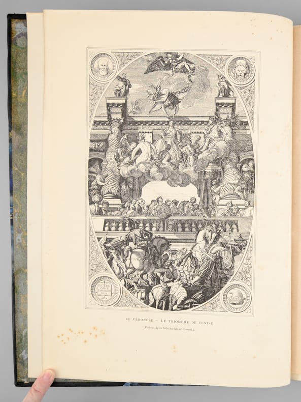 Ouvrage orné de 525 gravures dont 50 tirées hors texte et plusieurs en couleur. Dédié à Sir Richard Wallace.Édition originale. Paris, J. Rothschild - 1878 - X (Table du placement et Table des sommaires) et 328 pages.Reliure demi chagrin rouge à coins. Dos à nerfs richement orné et doré. Triple filet doré bordant les plats. Tête dorée. Très rares rousseurs. Coiffe supérieure fendillée sans manque. Menus frottements aux mors. Bon état. Format in folio (40x30).