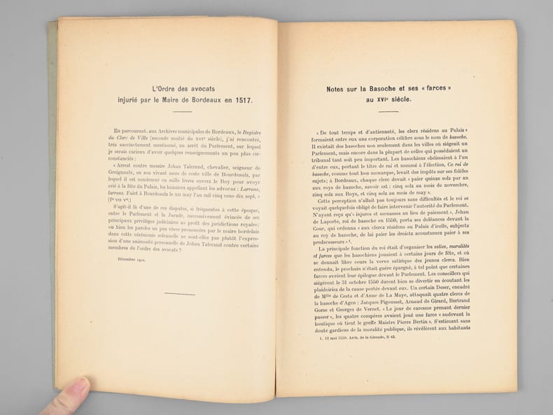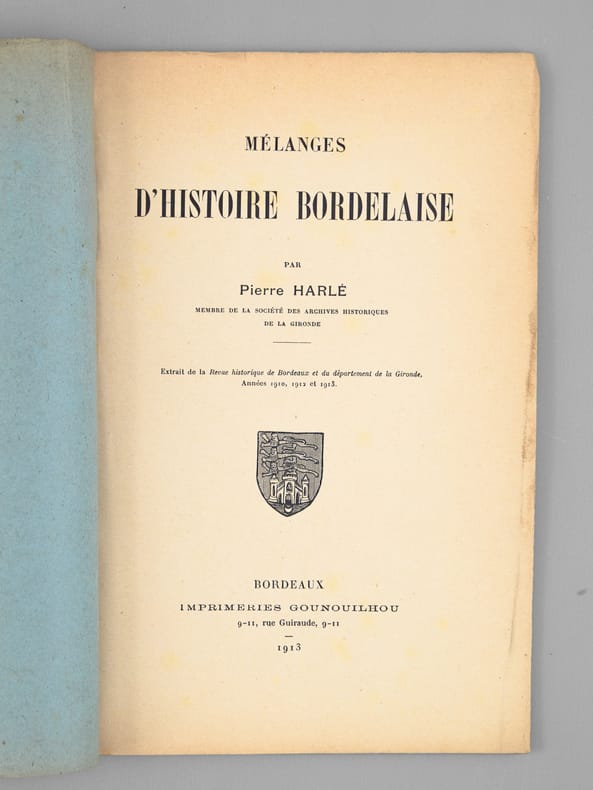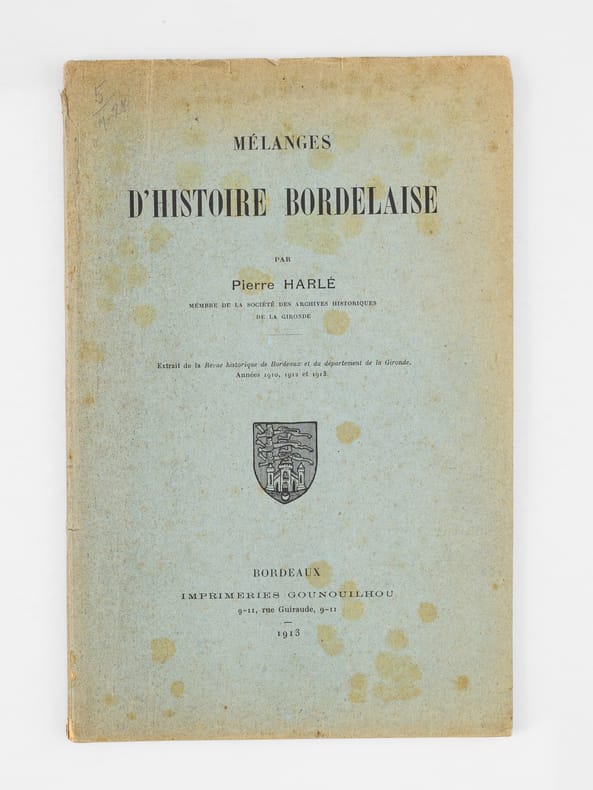 1 brochure in-8, Extrait de la Revue Historique de Bordeaux, 1910, 1912 et 1913, Imprimerie Gounouilhou, Bordeaux, 1913, 51 pp.