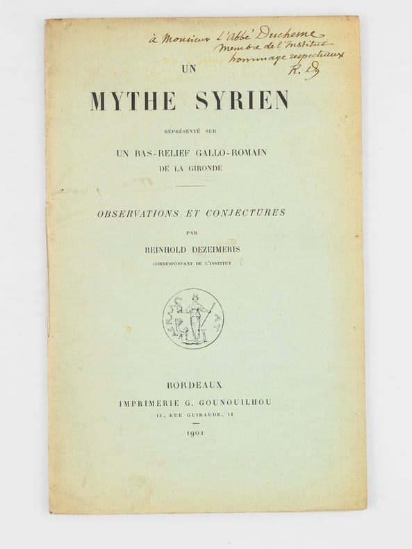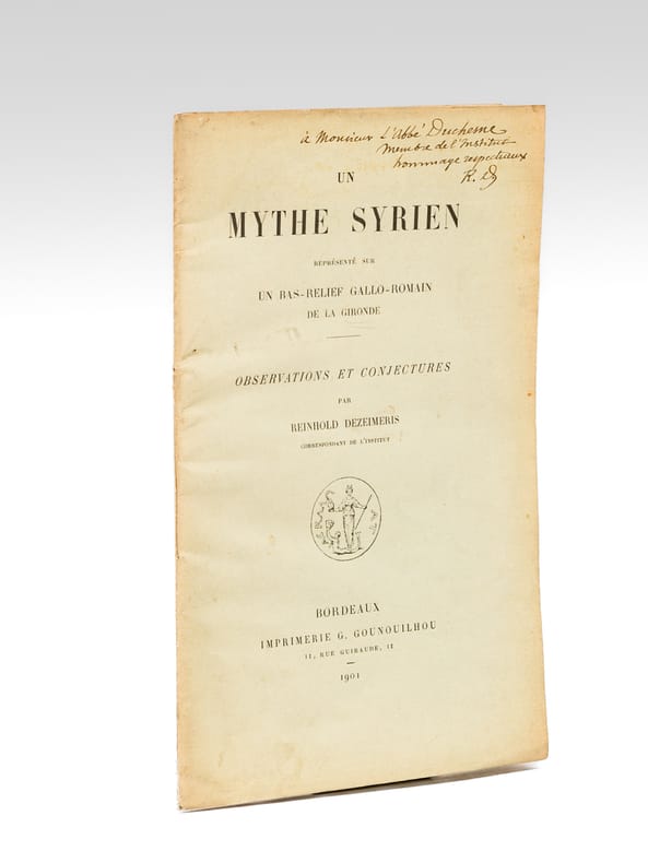 L'exemplaire est dédicacé "à Monsieur l'Abbé Duchesne Membre de l'Institut, hommage respectueux". Bon état pour cet exemplaire de provenance prestigieuse