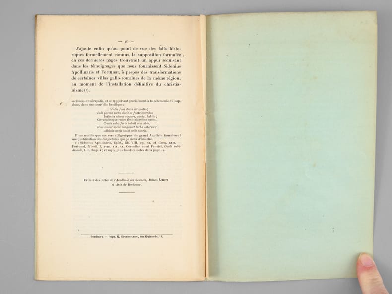 1 brochure in-8, Extrait des Actes de l'Academie des Sciences, Belles-Lettres et Arts de Bordeaux, Imprimerie G. Gounouilhou, Bordeaux, 1901, 16 pp. avec une planche en frontispice