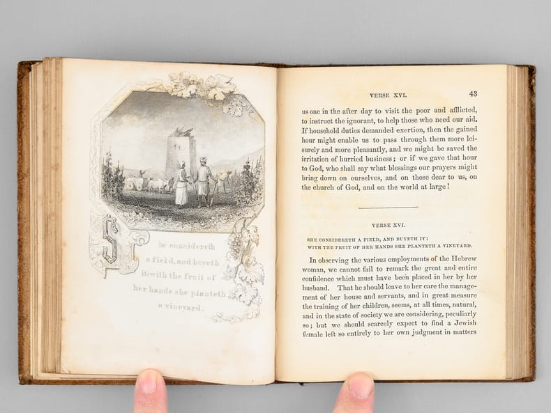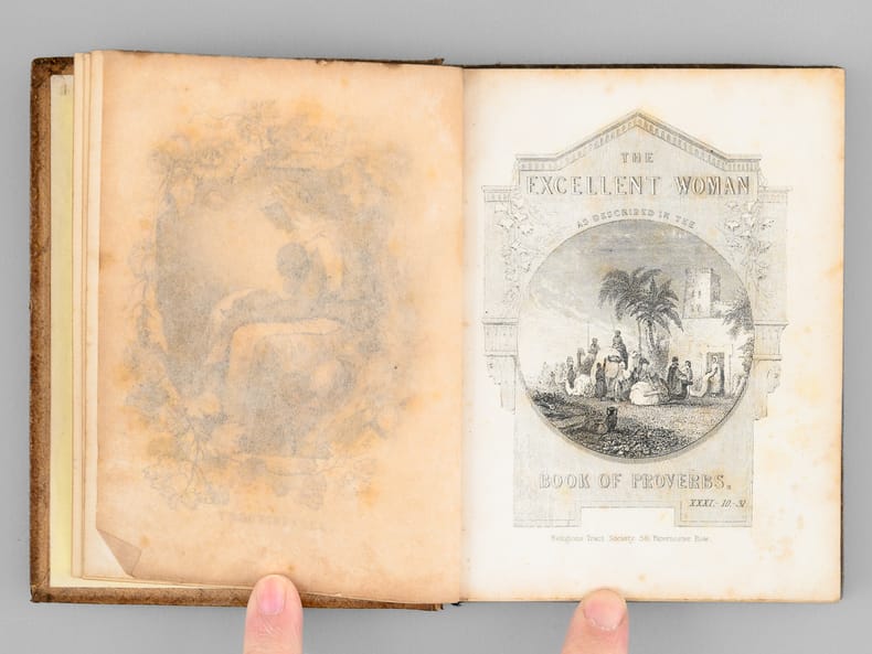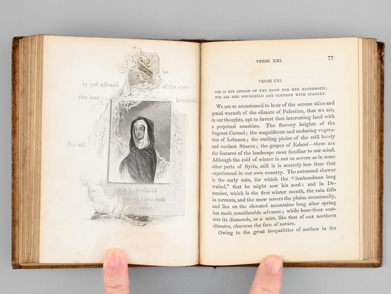 1 vol. in-12 reliure de l'époque plein maroquin blond, dos à 5 nerfs richement orné, toutes tranches dorées, Religious Tract Society, 56 Paternoster Row, s.d. [ circa 1840 ], 1 f. (titre gravé), 158 pp. et 1 f. n. ch. avec 23 planches hors texte