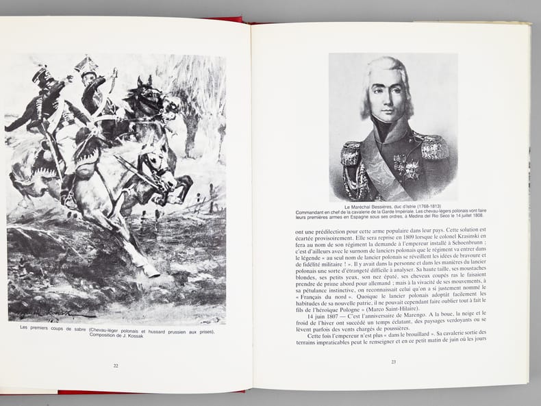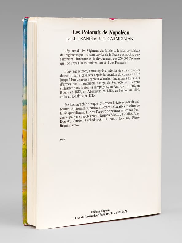 L'ouvrage est consacré au 1er Régiment des Lanciers, "le plus prestigieux des régiments polonais au service de la France" qui "symbolise parfaitement l"héroïsme et le dévouement des 250.000 Polonais qui, de 1796 à 1815 luttèrent au côté des Français". Etat très satisfaisant (accrocs à la jaquette, bon état par ailleurs).